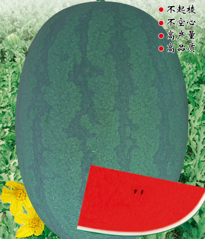 ■ 特征特性 :早熟種,雌花開放果實(shí)成熟28天左右。全生育期90天左右。植株長(zhǎng)勢(shì)穩(wěn)健,抗病抗逆性強(qiáng),適應(yīng)性廣,易坐果。果實(shí)橢圓形,果皮墨綠色底上覆暗條帶,果面光滑無棱帶蠟粉。瓤色深紅,瓤質(zhì)酥脆,中心糖14%左右,口感好,風(fēng)味佳。平均單果重8-10kg左右,大者20kg以上(特殊栽培),一般畝產(chǎn)6000公斤以上。皮厚1.0cm左右,果皮硬度強(qiáng),耐儲(chǔ)運(yùn)。