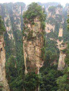 8日早上,我們乘坐“世界第一梯”——百龍?zhí)焯葜猎医绶屙?,這里是舉世聞名,奇特罕見的砂巖地貌。舉目遠(yuǎn)望,三千奇峰盡收眼底,怪石嶙峋,星羅棋布,雄險(xiǎn)秀野,神態(tài)各異。峽谷深處,千百根石峰石柱奇?zhèn)ネ涣?。峻峭之石,如英武將帥;嵯峨之峰,似勇猛壯士。天氣陰沉,下起小雨,此時(shí),峰谷內(nèi)云翻霧涌,數(shù)座山峰如中流砥柱巋然屹立于云霧之中,云海淼淼,如入蓬萊仙境,那里面一定住著神仙吧。
