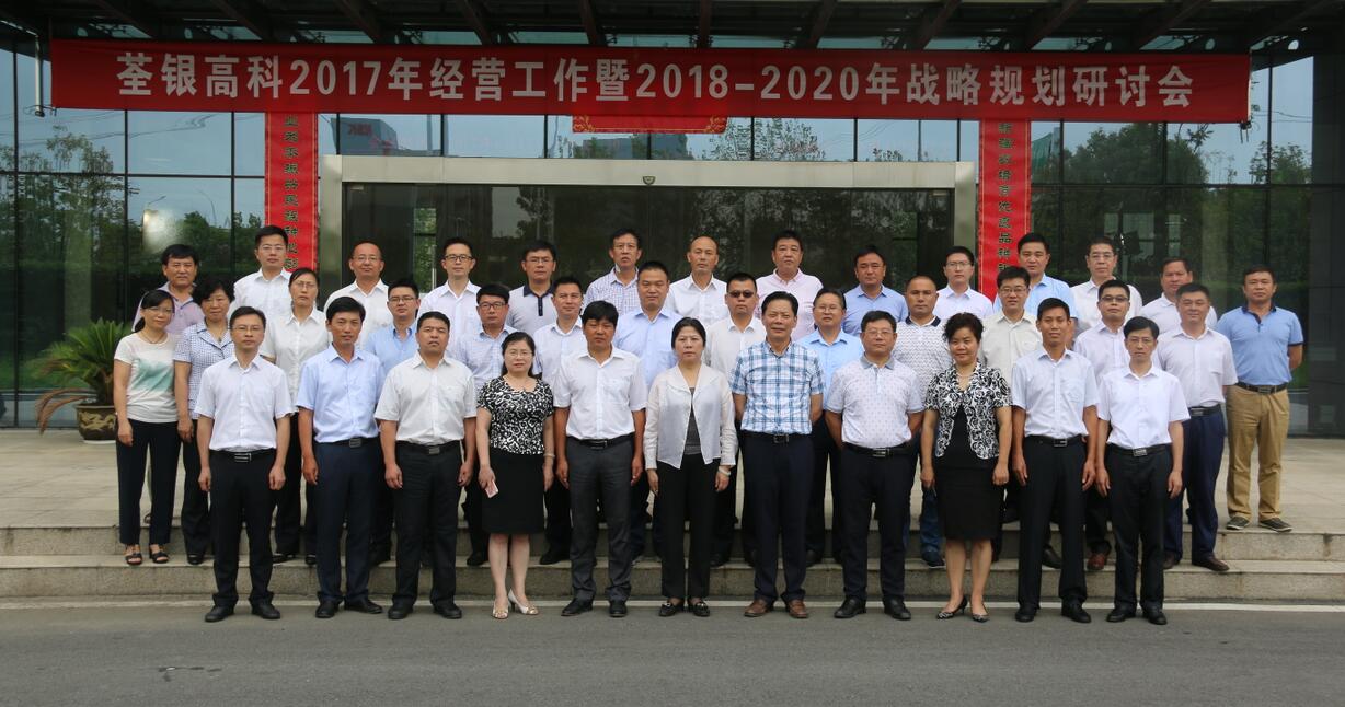 2017年8月12日,荃銀高科召開2017年度經(jīng)營(yíng)工作總結(jié)暨2018-2020年戰(zhàn)略發(fā)展規(guī)劃研討會(huì),認(rèn)真總結(jié)荃銀高科2016-2017年度經(jīng)營(yíng)工作,明確部署2017-2018年度經(jīng)營(yíng)工作目標(biāo)和任務(wù),科學(xué)謀劃編制2018-2020戰(zhàn)略發(fā)展規(guī)劃。荃銀公司總部中、高層管理人員以及各子(分)公司高管參加了會(huì)議,會(huì)議由王玉林總助主持。
